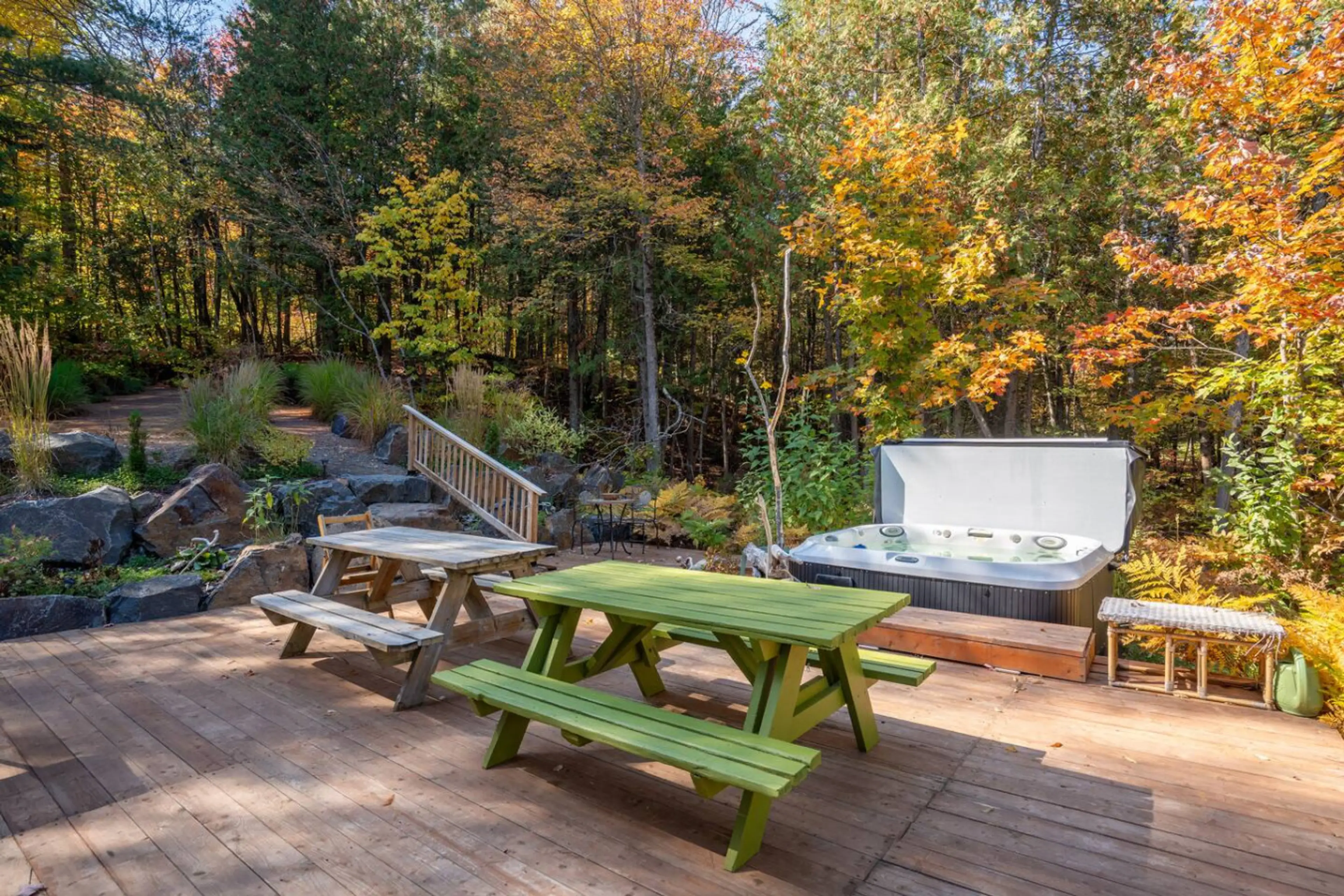 Chalet chaleureux et lumineux au cœur de la forêt de Chertsey. Profitez d’un grand terrain intime sans voisins, d’un spa quatre saisons, d’un poêle à bois et d’une verrière donnant sur un étang fleuri. Cuisine moderne, 3 chambres confortables et salle de jeux. À proximité des stations de ski, sentie...